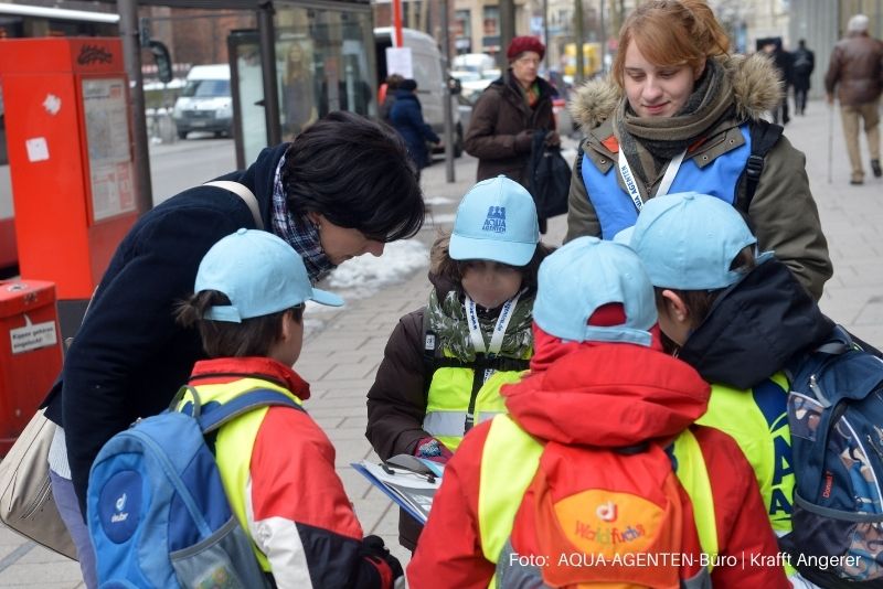 Die AQUA-AGENTEN-Kinder übernehmen dabei verschiedene Rollen – sie sind Interviewer*in, Wissensvermittler*in und Aufklärer*in zugleich. Dank der intensiven Vorbereitung im Unterricht sind die Nachwuchs-Agent*innen bestens auf ihren Einsatz vorbereitet und erweitern spielerisch ihre Kompetenzen und ihr Selbstbewusstsein.
